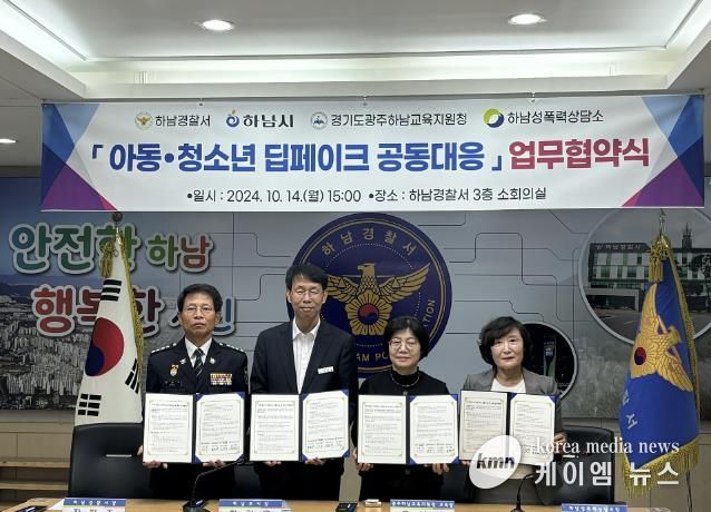 15일 하남시에 따르면 시는 이날 하남경찰서에서 3개 기관과 이 같은 내용을 골자로 한 '아동·청소년 딥페이크 공동대응을 위한 업무협약서'를 체결했다.