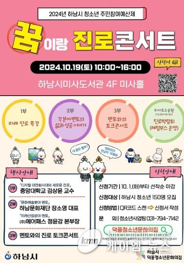 (케이엠뉴스) 하남시덕풍청소년문화의집은 오는 19일 하남시 청소년꿈이랑 진로콘서트를 미사도서관에서 개최한다.