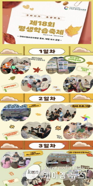 (케이엠뉴스) 구리시청소년재단 청소년수련관은 11일부터 13일까지 3일간 제18회 구리시 평생학습축제에 참가하여, 수련관 내 운영 중인 강좌와 행사를 알리는 홍보 부스와 각종 프로그램 체험 부스를 성공적으로 운영했다고 밝혔다.