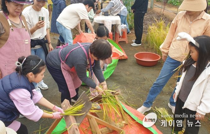 (케이엠뉴스) 김포시농업기술센터는 15일 관내 어린이 및 부모님 30여명을 대상으로 ‘천배의 벼’라는 주제로 벼 추수 및 나눔 프로그램을 진행했다.