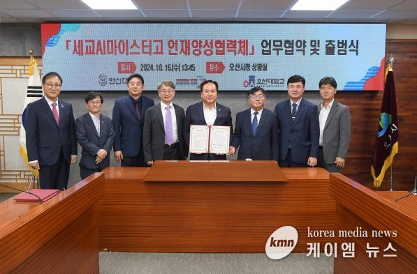 (케이엠뉴스) 오산시는 16일 오산시청 상황실에서 세교AI마이스터고 인재양성협력체 구성을 위해 오산대학교와 한신대학교와 업무협약을 체결했다.