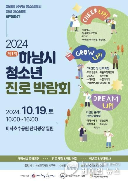 (케이엠뉴스) 미래를 꿈꾸는 청소년들을 위한 진로 페스티벌, ‘2024 하남시 청소년 진로박람회’가 오는 10월 19일 오전 10시부터 오후 4시까지 미사호수공원 잔디광장 일원에서 열린다.
