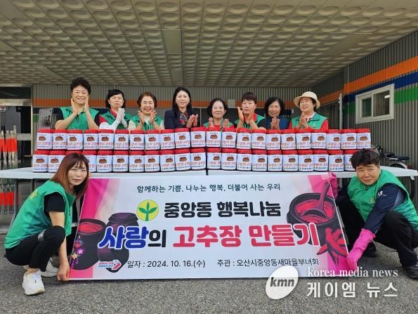 (케이엠뉴스) 오산시 중앙동은 16일 새마을부녀회가 관내 독거 어르신 및 소외계층을 위한‘사랑의 고추장 담그기’행사를 가졌다고 전했다.
