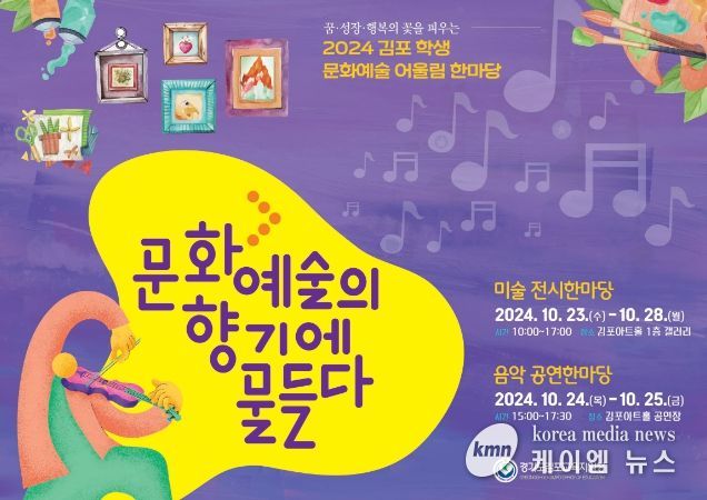 김포교육지원청은 오는 10월 23일부터 28일까지 '문화예술의 향기에 물들다, 꿈·성장·행복의 꽃을 피우다'라는 주제로 2024 김포 학생 문화예술 어울림한마당을 개최한다고 밝혔다.