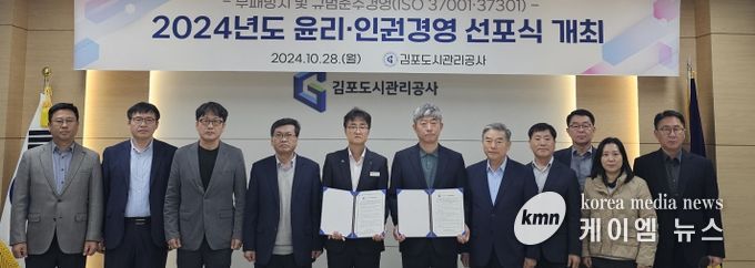 (케이엠뉴스) 김포도시관리공사는 10월 28일, 2024년도 윤리‧인권경영 선포식을 개최했다고 밝혔다.