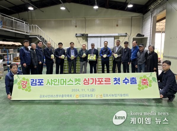 (케이엠뉴스) 김포시농업기술센터와 김포시포도연구회는 지난 11월 1일 금요일 싱가포르에 김포 샤인머스캣 첫 수출을 성공적으로 마쳤다. 이번 수출은 김포 샤인머스캣 해외 시장 진출을 위한 중요한 이정표가 됐다.