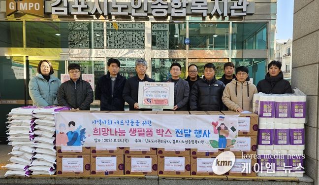 (케이엠뉴스) 김포도시관리공사는 지난 11월 28일 김포시노인종합복지관과 함께 ‘희망나눔 생필품박스 전달’ 행사를 실시했다.