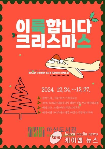(케이엠뉴스) 김포시 마산도서관이 오는 12월 24일부터 12월 27일까지 마산도서관에서 ‘이륙합니다. 크리스마스’를 운영한다.