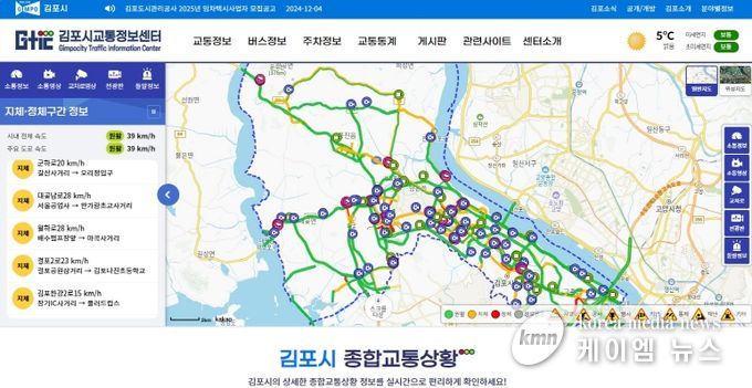 (케이엠뉴스) 김포시는 최첨단 교통도시를 목표로 추진한 ‘지능형 교통체계(ITS) 확대 구축사업’이 완료되어 오는 16일부터 정상 운영한다고 밝혔다.