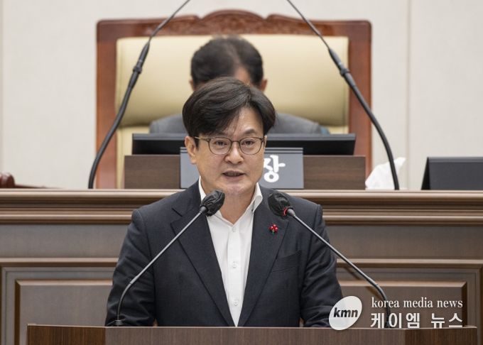 (케이엠뉴스) 김병수 김포시장이 13일 개회한 김포시의회 제251회 임시회 개회식에서 ‘2025년도 예산안 제출에 즈음한 시정연설’을 통해 “보다 나은 교육, 보다 따뜻한 돌봄, 보다 편리한 교통. 김포시정의 시작과 끝은 오직 김포시민의 편의제고”라며, “어떠한 위기에도 흔들리지 않는 김포시만의 새로운 성장동력을 창출함과 동시에 김포시민 여러분의 일상 속 행복을 안겨드리겠다”는 각오를 밝혀 김포브랜드 및 시민 삶의 질 향상이 2025년 김포시 방향임을 전했다.