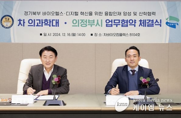 (케이엠뉴스) 의정부시는 12월 16일 차 의과학대학교와 ‘경기북부 바이오헬스 융합인재 양성 및 산학협력을 위한 업무협약(MOU)’을 체결했다.