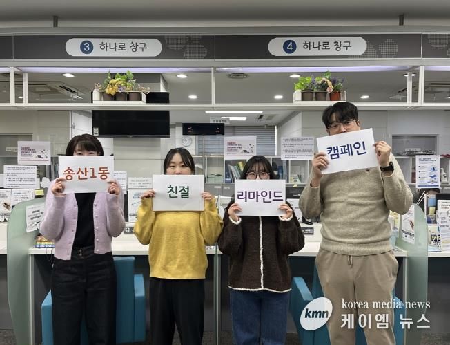(케이엠뉴스) 의정부시 송산1동주민센터는 12월 16일 하나로 창구 직원 일동이 친절 되새김(remind) 운동을 실시했다고 밝혔다.