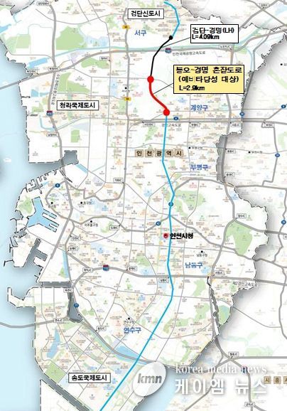 (케이엠뉴스) 인천광역시는 인천 북부의 검단지역과 남부의 송도지역을 연결하는 신규 남북 간선축의 핵심 도로인 ‘봉오–경명 혼잡도로 건설사업’이 제2차 예비타당성조사 대상 사업으로 선정됐다고 20일 밝혔다.