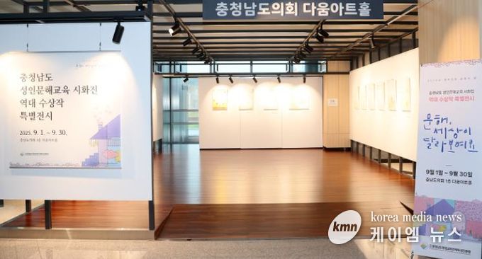 (케이엠뉴스) 충남도의회는 9월 1일부터 30일까지 도의회 1층 ‘다움아트홀’에서 ‘역대 충남 성인문해교육 시화전 수상작 특별전’을 개최한다.