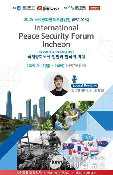 (케이엠뉴스) 인천광역시는 오는 9월 15일부터 16일까지 양일간 송도컨벤시아에서 '2025 국제평화안보포럼인천'을 개최한다.