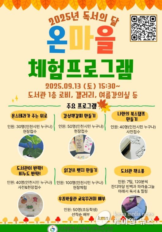 (케이엠뉴스) 인천광역시교육청신트리도서관은 독서의 달을 맞아 독서 활성화와 지역 문화 교류를 위해 ‘2025 온마을축제’를 13일에 개최한다.