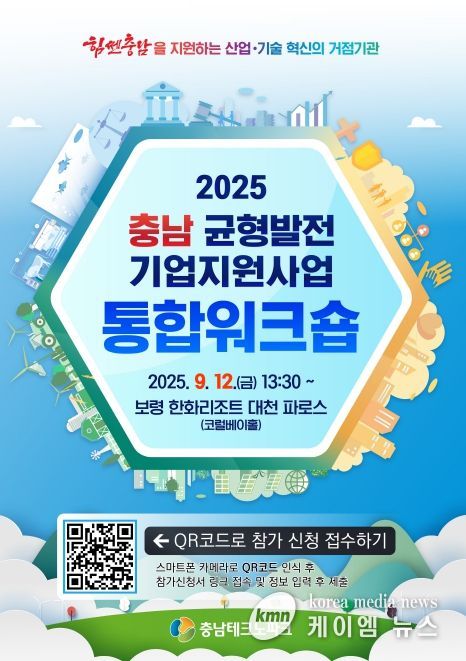 (케이엠뉴스) (재)충남테크노파크는 오는 12일 오후 2시 보령 한화리조트 대천 파로스에서 ‘충남 균형발전 기업지원사업 통합워크숍’을 개최한다고 밝혔다.