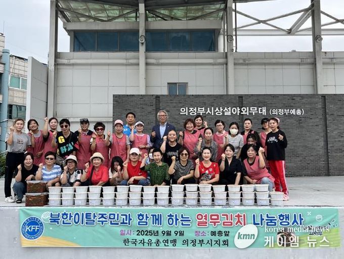 (케이엠뉴스) 의정부시는 9월 9일 한국자유총연맹 의정부시지회가 의정부예총 앞 잔디광장에서 ‘북한이탈주민과 함께하는 열무김치 나눔 행사’를 개최했다고 밝혔다.