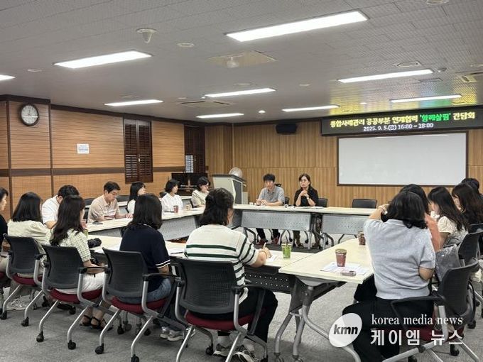 (케이엠뉴스) 의정부시는 9월 5일 시청 인재양성교육장에서 공공부문 연계‧협력 ‘함께 살핌’ 간담회를 열고, 공공기관 간 협업을 통한 사업 추진 방향과 우수사례를 공유했다.