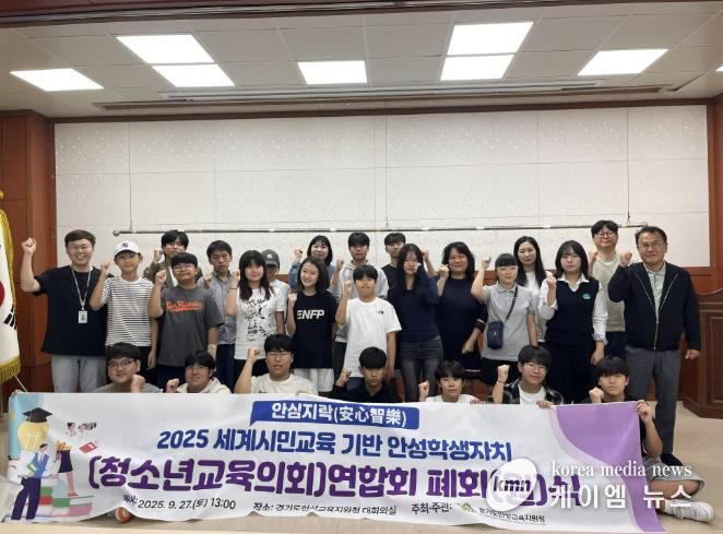 (케이엠뉴스) 경기도안성교육지원청은 2025년 9월 27일 오후 1시, 교육지원청 별관 대회의실에서“안성의 빛나는 리더들”을 주제로 2025 안성학생자치(청소년교육의회)연합회 폐회(원)식을 성황리에 개최했다.
