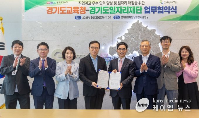 (케이엠뉴스) 경기도교육청이 30일 남부청사에서 경기도일자리재단과 도내 직업계고 학생의 성공적 사회 진출 및 일자리 창출을 위한 업무 협약을 체결했다.