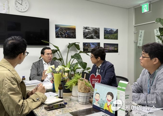 (케이엠뉴스) 경기도의회 농정해양위원회 이오수 의원(국민의힘, 수원9)은 1일 경기도의회 의원실에서 광교신도시 개발이익금의 합리적이고 투명한 활용 방안을 논의하기 위해 수원특례시 도시개발국 도시개발과 관계자들과 간담회를 가졌다.