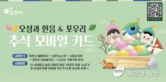 (케이엠뉴스) 포천시는 지난 1일 민족 최대 명절 추석을 맞아 시민들이 감사와 따뜻한 마음을 손쉽게 전할 수 있도록 ‘추석 모바일 카드’를 무료 배포했다.
