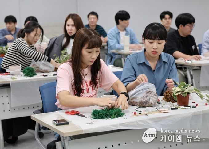 외부 강사 초빙해 식물을 이해하고, 임직원들이 직접 꾸미며 ‘나만의 작은 정원’을 완성하는 과정 속에서 참여자들은 긴장 완화·정서적 안정·몰입에 따른 스트레스 해소 효과와 성취감을 느낄 수 있었다.
