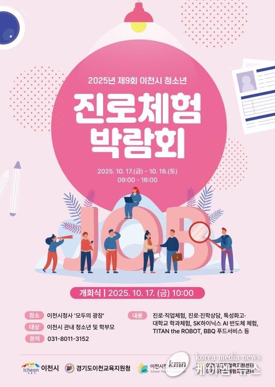 (케이엠뉴스) 이천교육지원청은 10월 17일~18일 이틀간 이천시청 앞 광장 일대에서 이천시 청소년 진로체험박람회를 개최한다.