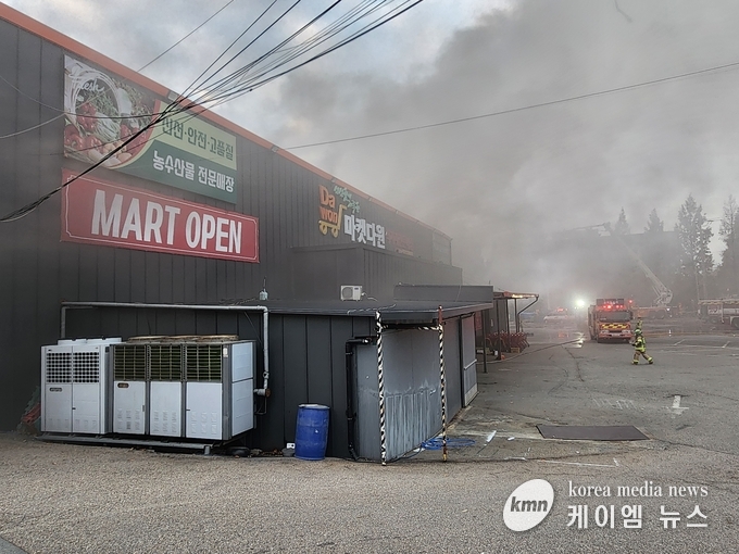 화재 현장은 약 500평 규모의 대형매장과 창고 등 4개 동에 640평 규모의 대형마트다.