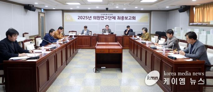 (케이엠뉴스) 수원특례시의회 의원연구단체인 ‘수원시 엘리트 체육 경쟁력 향상을 위한 연구회’(이하 연구회)가 11월 14일, 기획경제위원회 회의실에서 연구용역 결과보고회를 열었다.