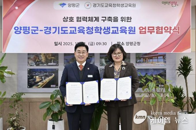 (케이엠뉴스) 양평군은 11월 21일, 경기도교육청학생교육원과 지역기반의 체험 중심 교육 활성화 및 상호 협력체계 구축을 위한 업무협약을 체결했다.
