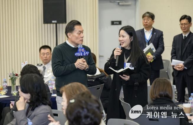 ‘2025 새빛만남- 수원, 마음을 듣다’에서 자주 볼 수 있는 풍경이다. 시민이 건의 사항을 이야기하면 담당 부서 책임자가 건의한 시민과 일정을 조율해 최대한 빨리 현장을 찾아 문제점을 확인하고, 개선 대책을 수립한다.