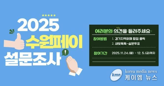 (케이엠뉴스) 수원특례시가 24일부터 12월 5일까지 ‘2025년 수원페이 사용자 설문조사’를 한다.
