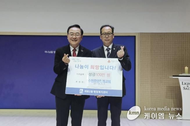 (케이엠뉴스) 수원중앙침례교회는 지난 23일, 관내 취약계층을 위해 불우이웃돕기 100만원 성금을 세류2동 행정복지센터에 후원했다.
