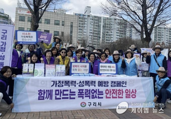 (케이엠뉴스) 구리시는 지난 26일 여성 폭력 추방 주간(11월 25일~12월 1일)을 맞아, 시민 이동이 많은 구리역 일대에서 가정폭력‧성폭력 예방을 위한 민·관·경 합동 캠페인을 했다고 밝혔다.