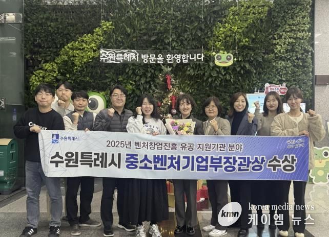 (케이엠뉴스) 수원특례시가 중소벤처기업부가 주관한 벤처창업진흥 유공 포상에서 ‘우수정책입안단체’로 선정돼 중기부 장관상을 받았다. 시상식은 27일 경기창조경제혁신센터에서 열린 ‘2025 경기 딥테크 스타트업 FLEX’ 행사 중 열렸다.