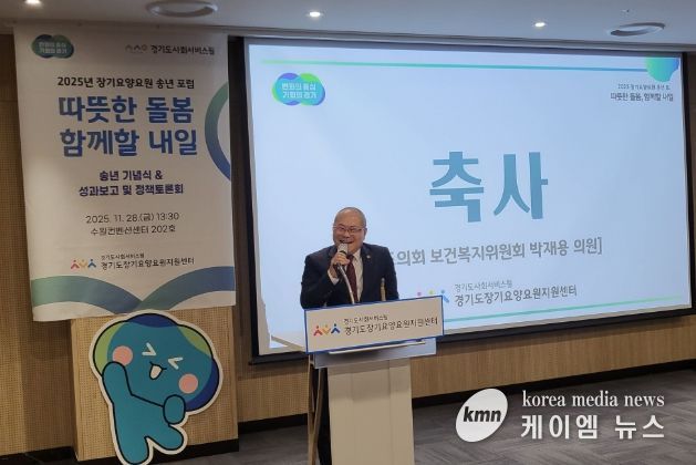 (케이엠뉴스) 경기도의회 보건복지위원회 박재용 의원(더불어민주당, 비례)은 28일, 수원컨벤션센터에서 열린 ‘2025 장기요양요원 송년 포럼’에 참석해 장기요양요원의 처우개선과 지속가능한 돌봄 환경 조성을 위한 의회의 역할을 강조했다. 이번 포럼에는 경기도의회 보건복지위원회 김동규 의원(더불어민주당, 안산1)도 함께해 현장의 의견을 경청하고 장기요양 종사자들을 격려했다.