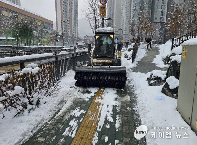 또한 새롬마을, 곤제마을, 민락2상업지구 일원 등 제설 취약 지역 5개소를 상습 결빙 구간, 경사로, 이면도로로서 중점 관리 구역으로 지정했다. 아울러 제설함 21개소에 제설제를 비치하고 ‘내 집 앞, 내 점포 앞 눈 치우기’에 주민들의 적극적인 참여를 독려했다.
