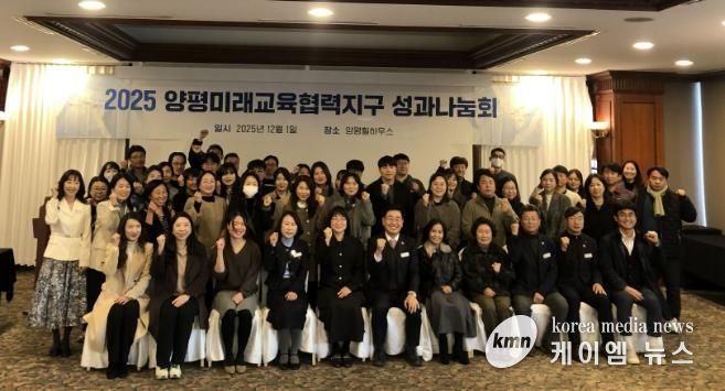 (케이엠뉴스) 양평군 교육협력센터는 12월 1일 전진선 양평군수, 여미경 양평교육지원청 교육장을 비롯한 관계자 60여 명이 참석한 가운데 ‘2025 양평미래교육협력지구 성과나눔회’를 열고, 올 한 해 추진된 미래교육 협력사업의 주요 성과와 지역교육의 변화를 이끈 현장 사례를 공유했다.