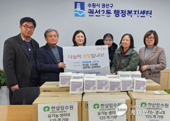 (케이엠뉴스) 수원시 권선구 권선2동행정복지센터는 3일 한살림 수원생협 권선지역 운영위원회로부터 여성 위생용품(생리대) 125팩을 기부받았다고 밝혔다.