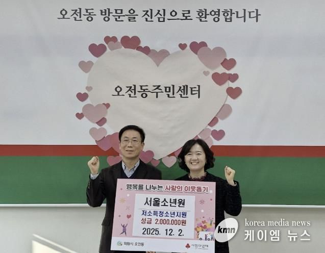 (케이엠뉴스) 의왕시 서울소년원은 12월 2일, 오전동의 경제적 어려움을 겪는 청소년들을 지원하기 위해 장학금 200만 원을 오전동주민센터에 기탁하며, 지역사회에 따뜻한 손길을 전했다.