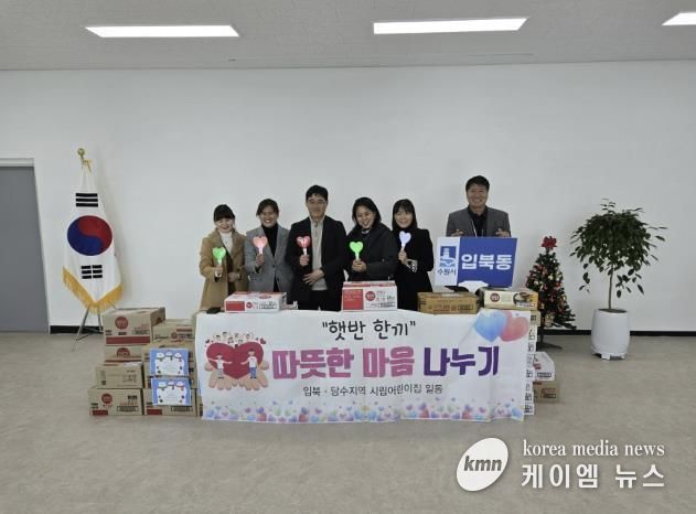 (케이엠뉴스) 당수동 소재 어린이집 5개소(시립 당수동·시립 수원당수 LH 1·시립 수원당수 LH 2·시립 라포리엘·시립 한라 비발디 3단지 어린이집)는 지난 4일 입북동 행정복지센터를 방문해 생필품(햇반, 김 등) 72박스를 전달했다.