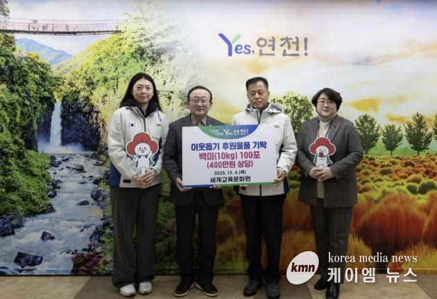 (케이엠뉴스) 세계교육문화원은 지난 4일 연천군청을 방문해 지역 내 저소득층 아동을 지원하기 위해 백미 10kg 100포(400만 원 상당)를 기탁했다.