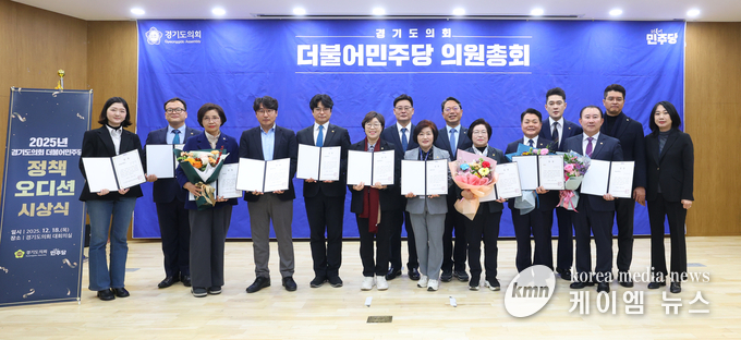 더불어민주당은 18일(목) 경기도의회 대회의실에서 열린 의원총회에서 김동규 정책위원장(안산1)의 사회로 ‘2025 경기도의회 더불어민주당 정책 오디션 시상식’을 진행했다.