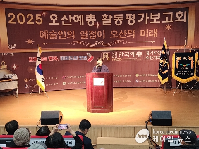 (사)한국 예술 문화단체 총연합회 오산지회(김은정 지회장)는 12월 18일 18시 오산 중앙동 행정복지센터 대강당에서 2025 활동 평가보고회를 개최했다.