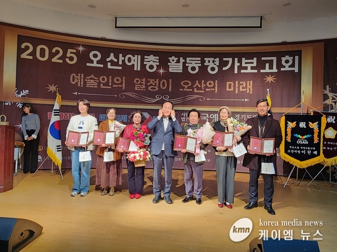 이어 2025년 (사)한국 예술 문화단체 총연합회 오산지회 문화예술인들의 권익을 옹호하고 상호 간의 친목을 도모하며 향토예술 문화의 위상을 높인 공로자 8명에게 이권재 오산시장과 이상복 오산시의회 의장이 공로패를 전달했다.