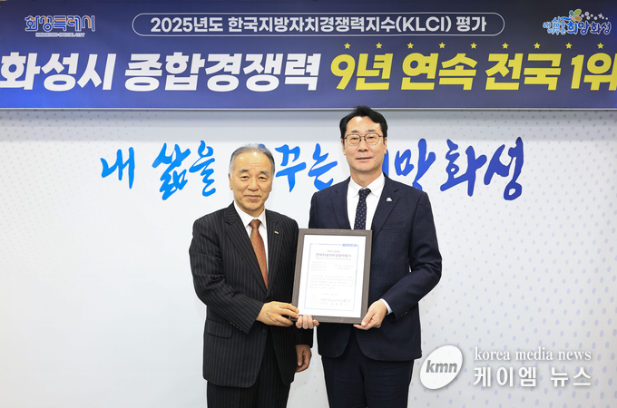 화성특례시가 사) 한국 공공 자치연구원에서 실시한 2025년 한국 지방자치 경쟁력지수(KLCI) 조사에서 9년 연속 전국 1위를 차지했다.