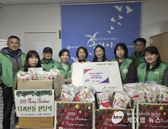 이번 행사는 연말과 크리스마스를 맞아 지역아동센터를 이용하는 아이들이 따뜻하고 즐겁게 지낼 수 있도록 마련됐으며, 교문1동 새마을문고 회원들이 정성껏 준비한 다과 선물 세트를 각 센터에 전달했다.