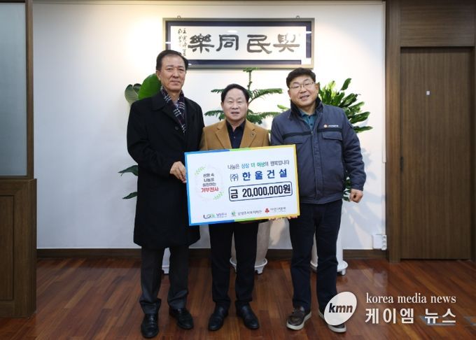 (케이엠뉴스) 남양주시는 19일 시장 집무실에서 ㈜한울건설이 경제적 어려움을 겪는 아동을 지원하기 위해 후원금 2천만 원을 기탁하고 민관 협력 기반의 나눔 실천을 이어가고 있다고 밝혔다.